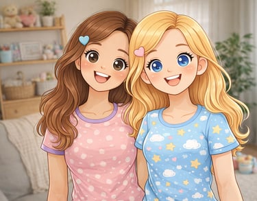Siamo Vittoria e Sofia, due creative con la passione per il mondo dei bambini e per tutto ciò che trasforma i ricordi in qualcosa di speciale. Da sempre amiamo disegnare, creare e dare vita a immagini dolci e personalizzate, capaci di raccontare le emozioni delle famiglie. Coccole Digitali nasce proprio da questa passione: l’idea di realizzare grafiche uniche, pensate su misura per ogni bambino, per celebrare i momenti più importanti con un tocco di magia. Ogni ritratto, invito o favola che creiamo è fatto con cura, attenzione ai dettagli e tanto amore. Il nostro obiettivo è semplice: regalare piccoli sorrisi e ricordi preziosi che possano accompagnare le famiglie nel tempo.